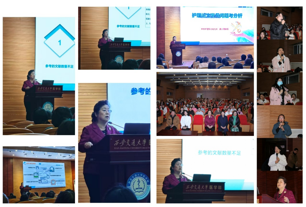 讲座中,姜小鹰教授结合多年期刊审稿与编辑工作的丰富经验,系统梳理了当前护理论文撰写中普遍存在的共性问题,通过典型案例进行了深入讲解与分析,并提出了具有针对性和可操作性的改进建议。在交流互动环节,与会师生踊跃提问,就论文写作与发表过程中遇到的实际问题与姜小鹰教授进行了深入交流,现场学术氛围浓厚。