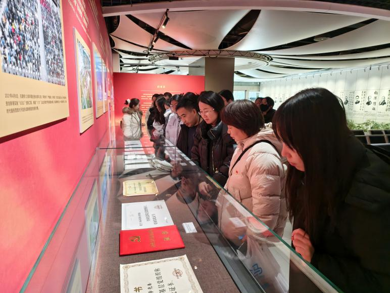 参观现场,师生党员们循着历史时序缓缓前行,细致观看。一幅幅珍贵的历史图片、一件件斑驳的实物文献、一段段珍贵的影像资料,将那段筚路蓝缕的创办岁月、那场感动中国的西迁壮举、那些锐意改革的奋进故事,如画卷般铺陈开来。同志们时而驻足凝视泛黄的党员登记表、早期刊物与手稿,感受信仰的力量;时而俯身端详西迁时使用的行李箱、教学仪器,体会创业的艰辛;时而在展现中国西部科技创新港规划建设的沙盘前交流讨论,展望未来发展的蓝图。